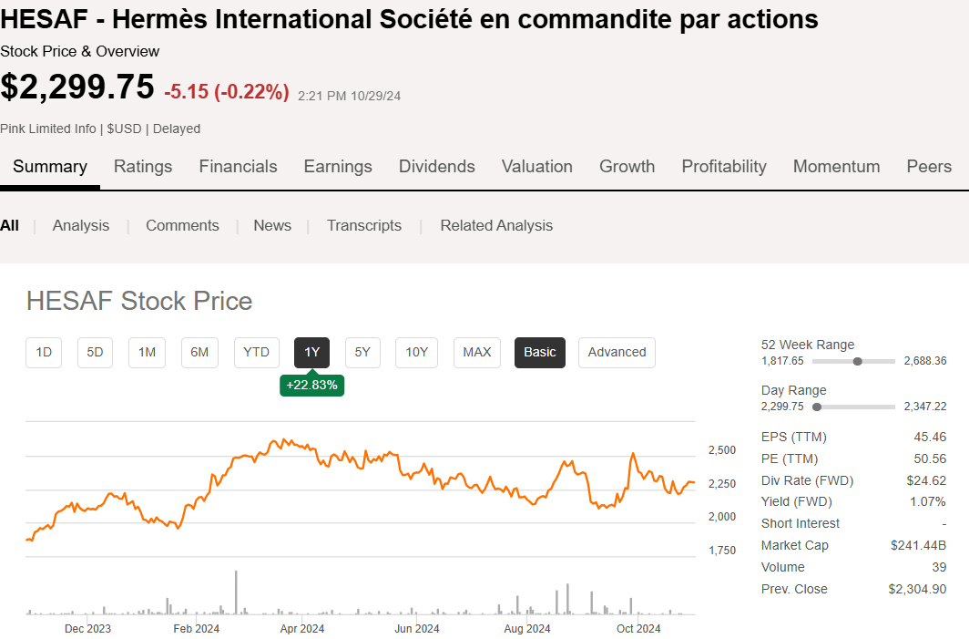 명품 주식인 에르메스가 궁금하신 분은 이전의 글을 참고하시면 됩니다.