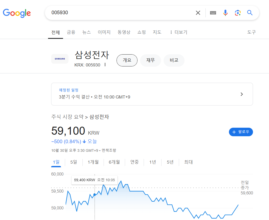 한국, 일본장 등은 숫자로 표시가 됩니다. 삼성전자는 005930 입니다. 이 티커를 사용하면 한국말을 모르더라도 간편하게 검색이 됩니다.