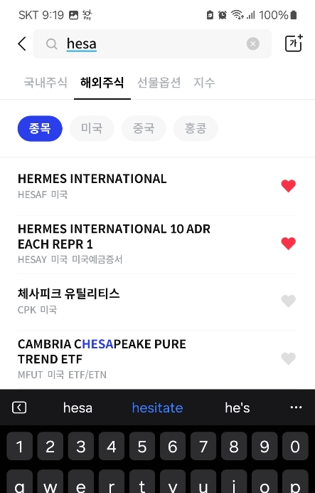 미국주식을 사듯이 관심종목에서 HESAY 를 검색해서 매수하면 됩니다. 너무 이지 합니다.